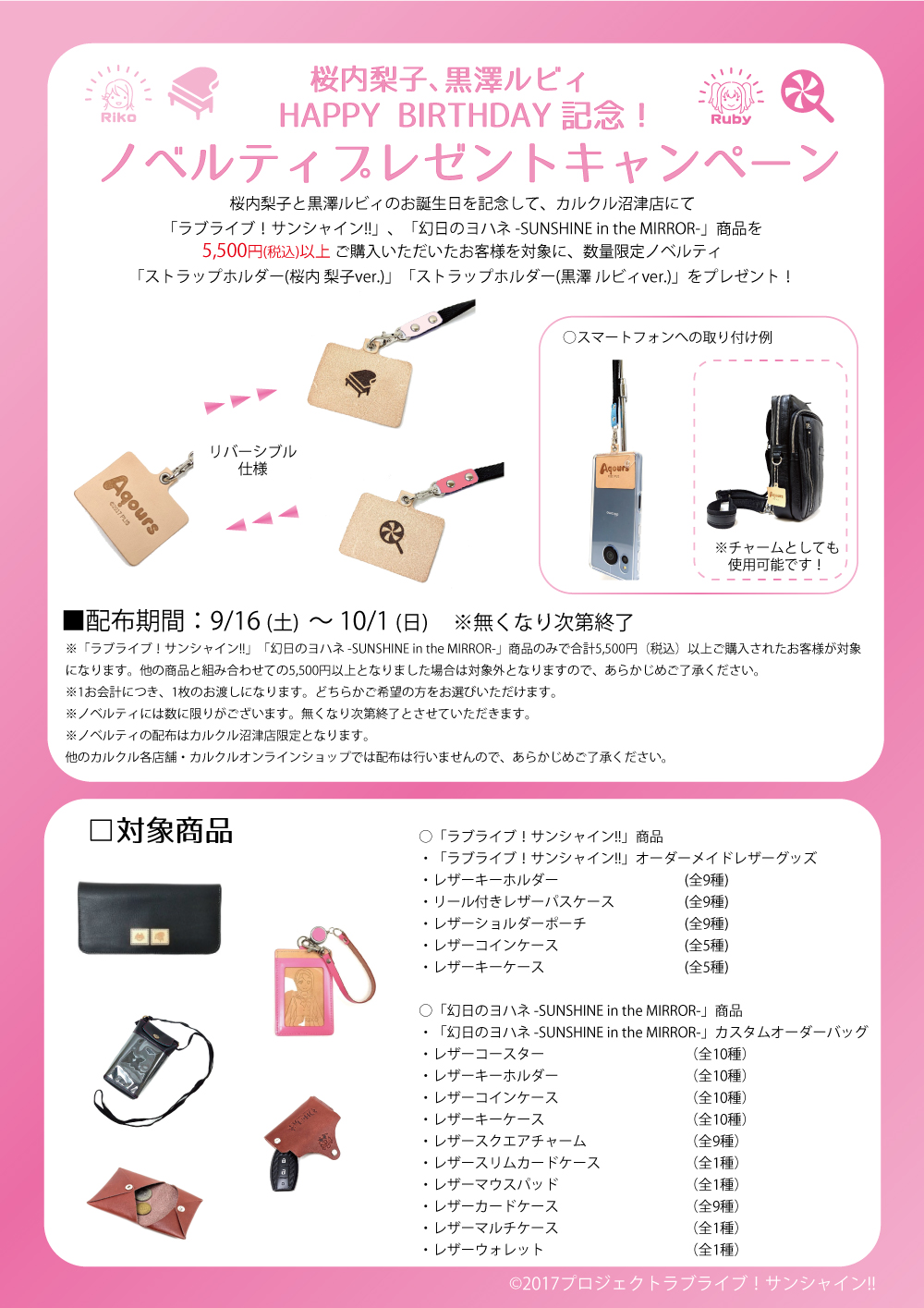カルクルより桜内 梨子・黒澤 ルビィバースデー記念ノベルティ配布のお知らせ